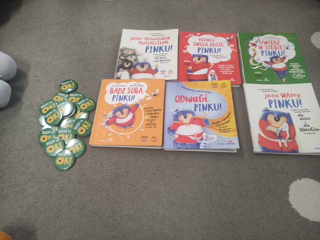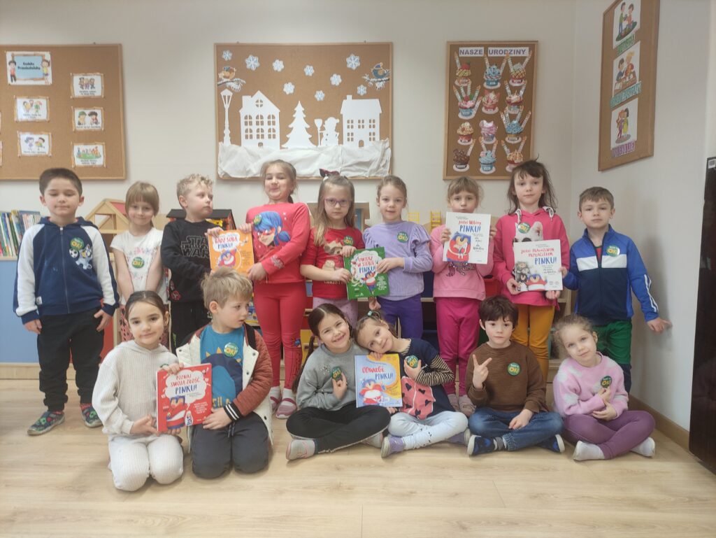 Seria książek o Pinku, uroczym niebieskim stworku, który pomaga dzieciom budować pewność siebie, oswajać lęki, złość oraz uczy asertywności, łącząc krótkie opowiadania z praktycznymi ćwiczeniami.
